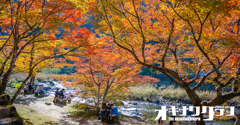 11月16日に愛知県豊田市で行われた「第17回全国沖縄県人会交流会」を取材するため、同月14日から同市を訪れた。愛知琉球エイサー太鼓連のメンバーに市内の見どころを尋ねると、足助(あすけ)町の「香嵐渓」がちょうど紅葉の見頃だという。沖縄では観られない絶景を求め、早朝から山道に繰り出した。