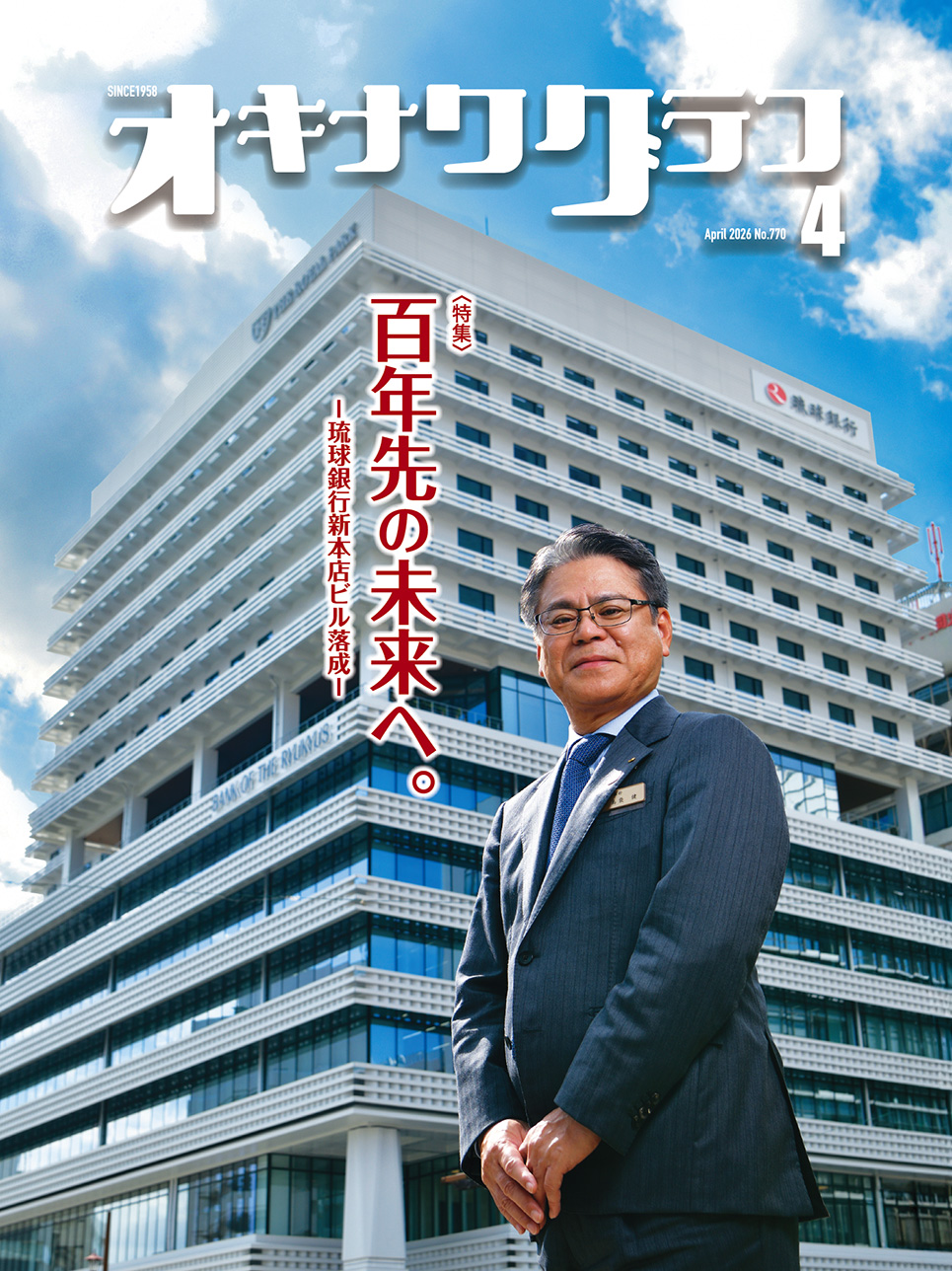 琉球銀行本店営業部は4月6日、仮本店ビル(那覇市東町)から久茂地に竣工した新本店ビルに移転し、グランドオープンを迎える。新本店ビルは「大樹」のコンセプトの下、百年先の未来を見越した強靭な躯体、行員の心身の健康に配慮したオフィス設計となっており、全国の地銀に先駆けて「WELLv2認証」の予備認証を取得した。設計段階から主導した島袋健頭取と南風盛浩史総務部長にその経緯をお聞きし、山入端常務と同ビルに入居する関連5社代表との座談会を収録した。